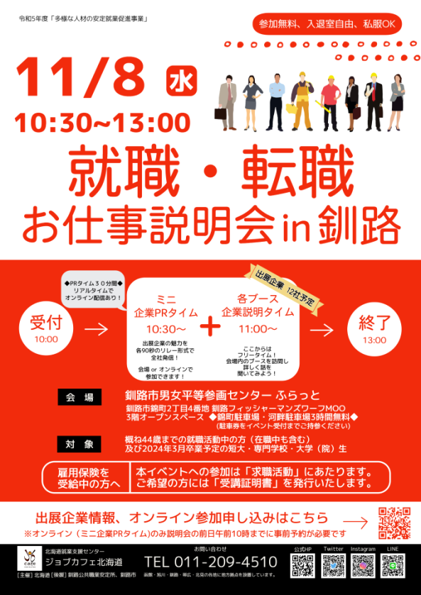 ▶ ジョブカフェ北海道【 就職・転職 お仕事説明会 in 釧路】